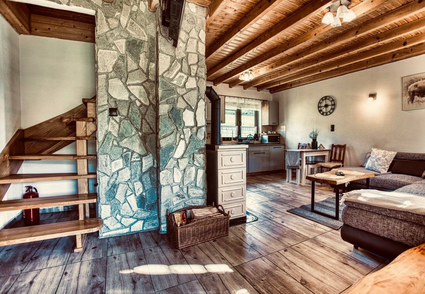 Nasze całoroczne domki w Stężnicy łączą komfort hotelu z niepowtarzalnym klimatem bieszczadzkiej wsi.
